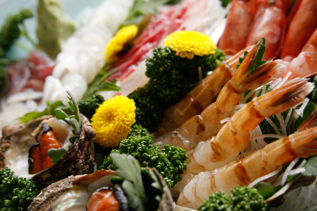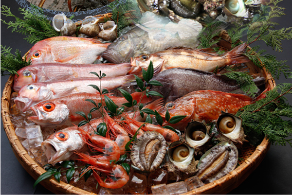 採れたての新鮮な魚介類をいけすで生かし、調理する直前に捌きます。