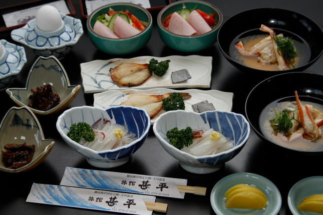 朝も越前で獲れた海の幸を中心とした朝食をご用意しております。