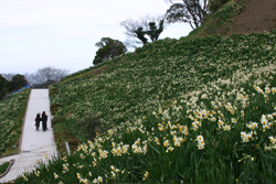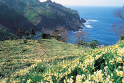 灯台をバックに日本海を望む「越前岬水仙ランド」。”四季の大自然”をテーマとする水仙ランドの中心には、ガーデンクラブハウス「水仙の館」が建っています。周辺には越前町ゆかりの文人の足跡を残す「自然文学資料館」をはじめ、ギリシャ神話のナルシスをイメージした「ナルシスの丘」、豪快なパノラマを誇る「展望ゾーン」、水仙郷を観ながら散策できる「水仙ゾーン」など見どころがいっぱい。大自然に抱かれた気分を味わえる空間として愛されています。